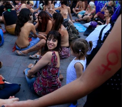 Poco antes de las 17:00 las agrupaciones comenzaron a llegar al obelisco, en donde se concentraron y con el paso de las horas se fueron sumando más y más mujeres, algunas con sus torsos descubiertos y otras, sólo acompañando el reclamo. "Mostrar las tetas no es delito, esto habla de la hipocresía y la doble moral que tenemos como sociedad, que solamente permite el cuerpo femenino que vende, y el que se ve en la televisión", indicó Fernanda Gonzalez, de la agrupación Mumala (Mujeres de la Matria Latinoamericana), sede Capital.