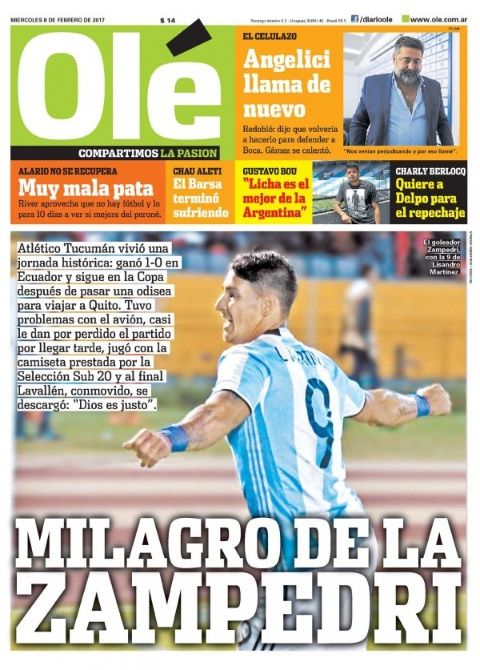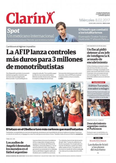 ¿Qué dicen los diarios del 8 de febrero de 2017? Controles para monotributistas, tetazo, Atlético de Tucumán venció y más...