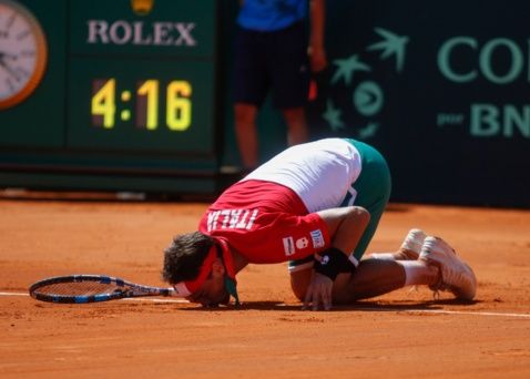 El bahiense Guido Pella cayó ante Fabio Fognini por 6-2, 6-4, 3-6, 4-6 y 2-6 en 4 horas y 15 minutos. De esta manera, Argentina quedó afuera de la Copa Davis en los octavos de final.